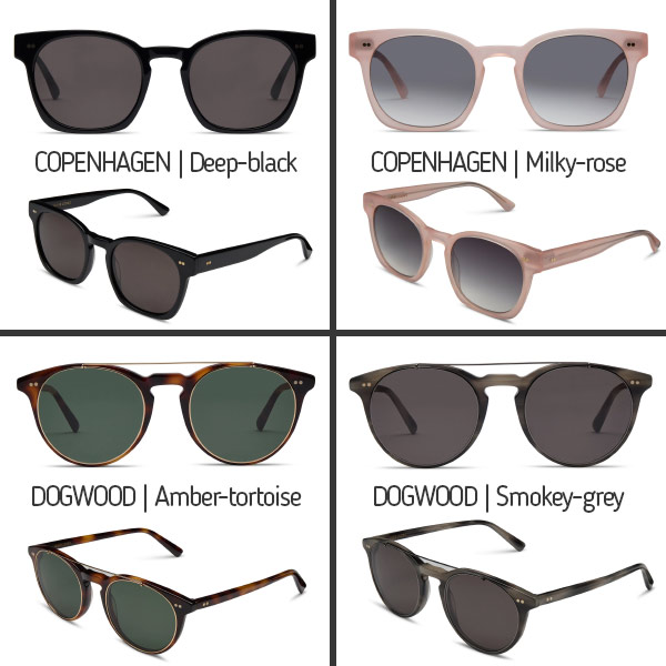 Dansk design og lækker kvalitet. Jamie Looks solbriller model Copenhagen og Dogwood, fås i flere farver. Værdi kr. 799,-